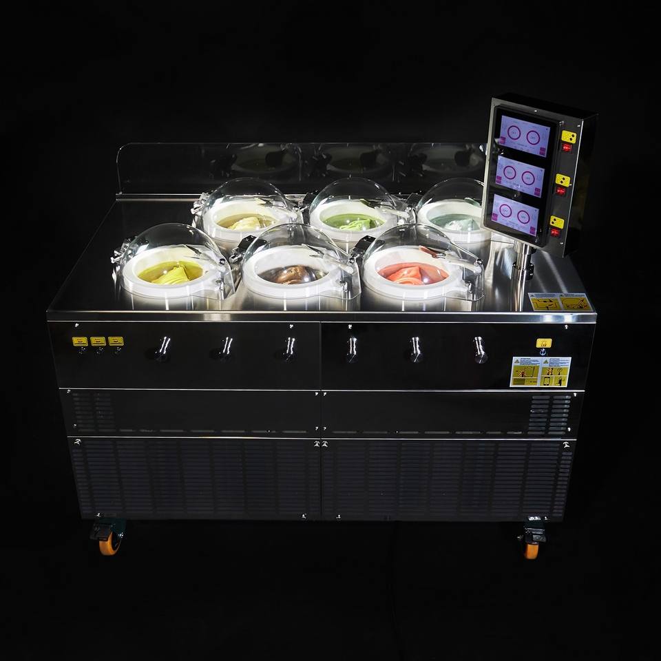 Machine à glaces et sorbets professionnelle Miles Galaxy Pro V6 à 6 pots, en acier inoxydable, système anti-buée, 750 coupes, sur pied