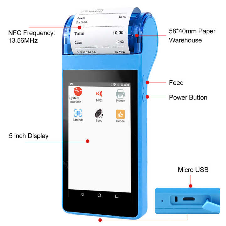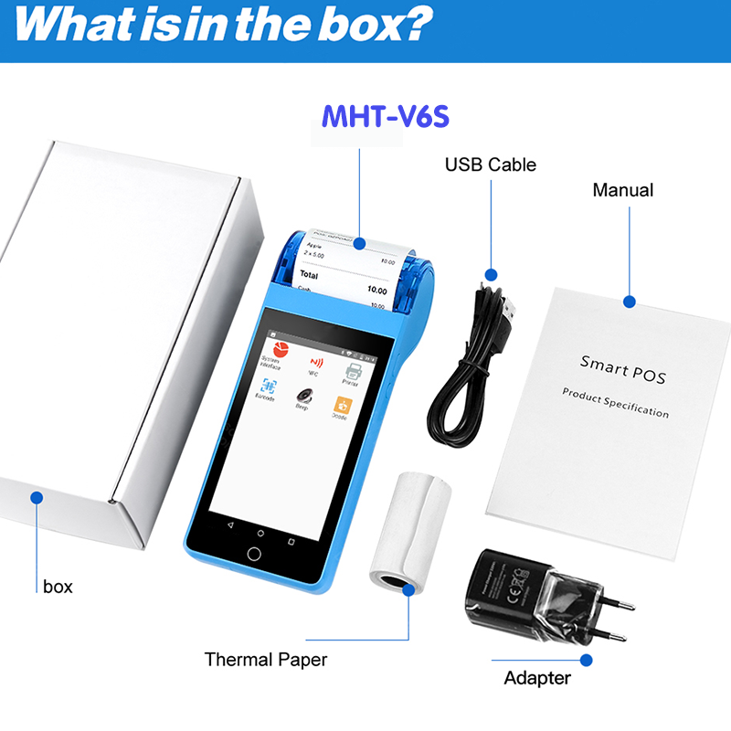 Milestone MHT-V6S android 2 SIMs prepaid card pos payment terminal ticket printer all in one touch screen