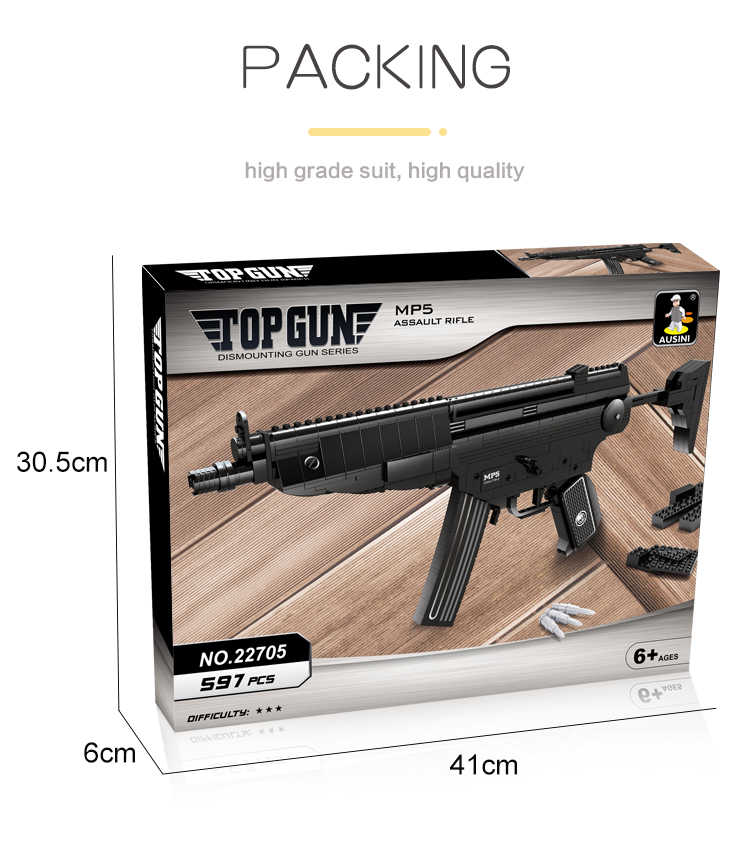 Bloc de construction militaire pistolet artificiel MP5 pistolet d'assaut A modèles de Simulation pistolet jouet accessoires de jeu militaire