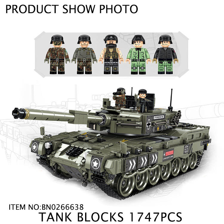 Modèle de char d'assaut Leopard 2 sur le thème militaire de Jacko Toys avec figurines miniatures, blocs de construction, 1747 pièces
