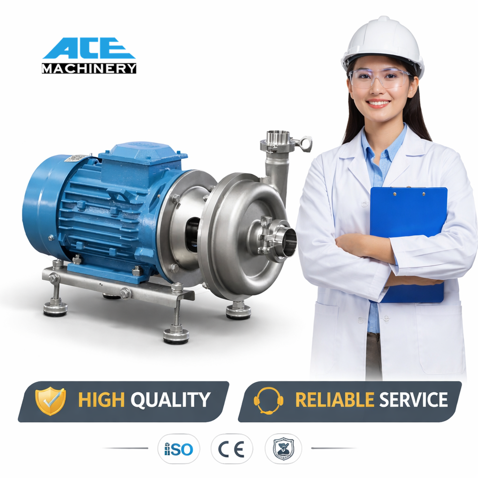 Pompe centrifuge sanitaire auto-amorçante pour la bière, pour le traitement du lait, du sirop, de l'huile, avec volute, gaine, agitateur et filtration CIP