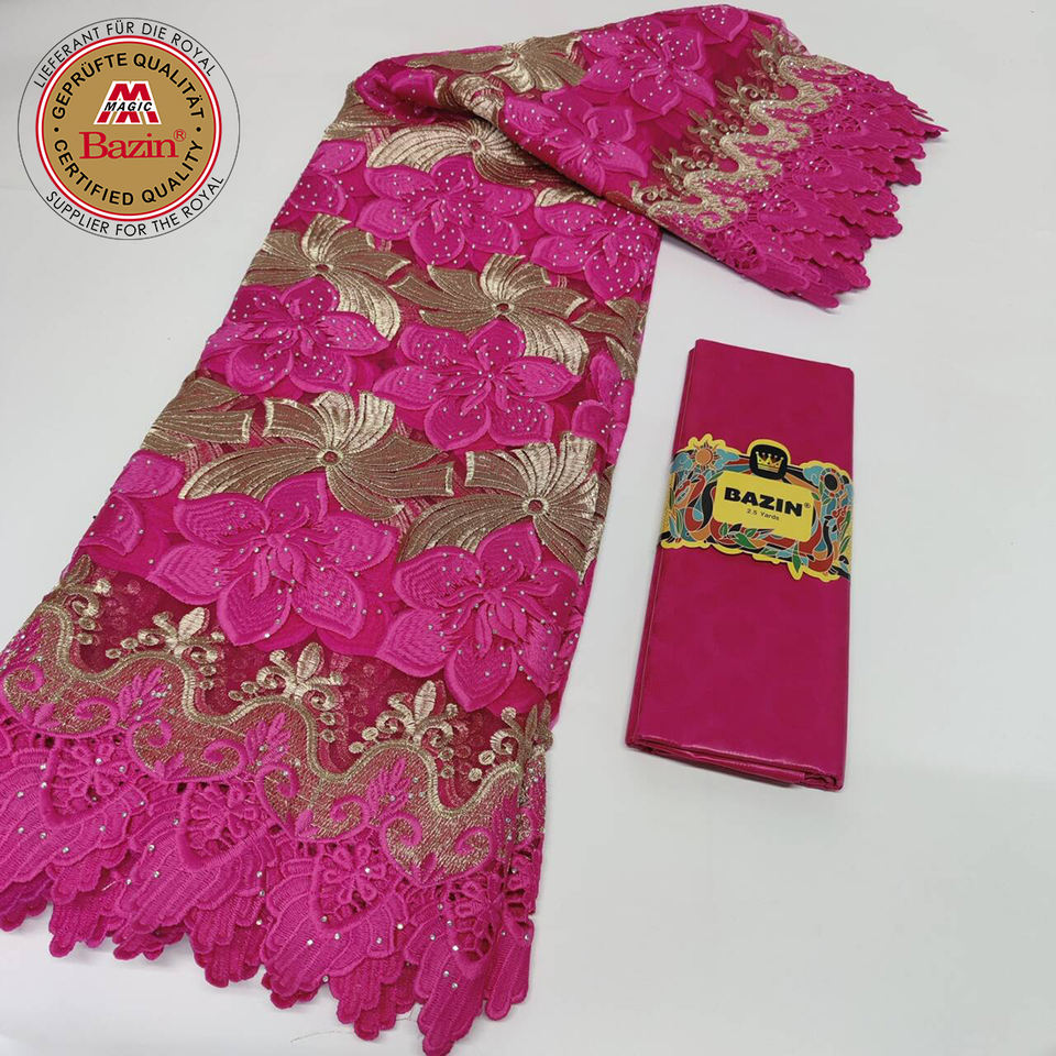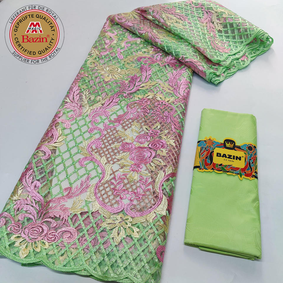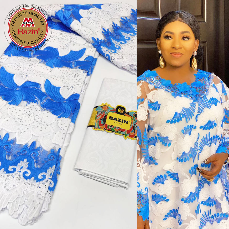 Tissu en dentelle de soie de lait africaine, maille française, avec Bazin Rich, matière originale pour les femmes nigérianes, mariage, mariée, dentelle en tulle