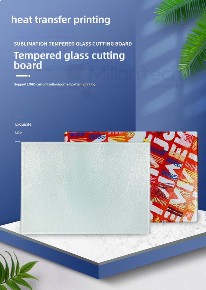 Planche à découper et ornement en verre blanc personnalisé Millan 28x38cm, durable, pour sublimation, idéal pour cadeau artisanal DIY