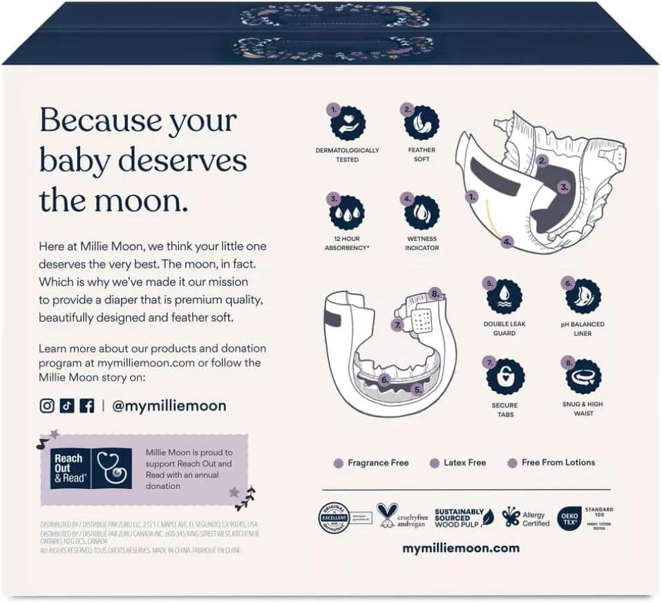 Millie Moon Couches en coton jetables de luxe Imprimé Design Taille 7 44ct pour bébés