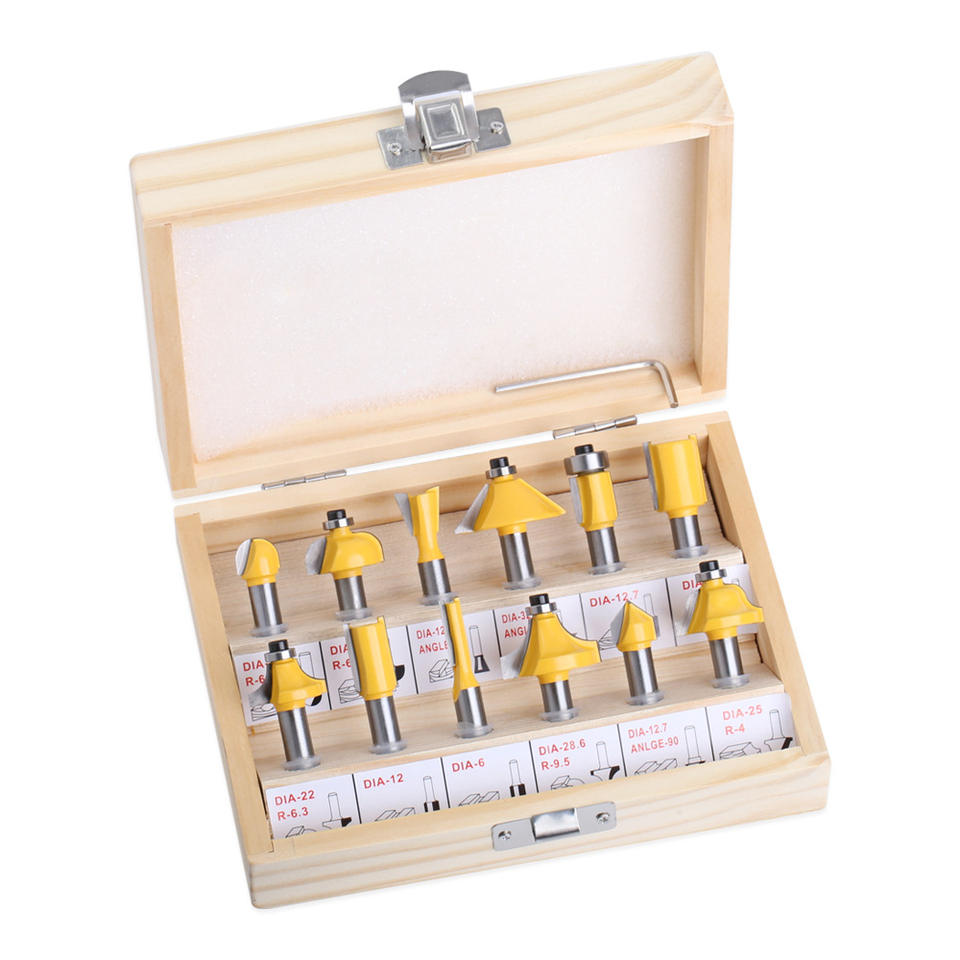 Ensemble de 12 fraises à bois en carbure de tungstène avec tige de 1/4 pouce pour centre d'usinage CNC