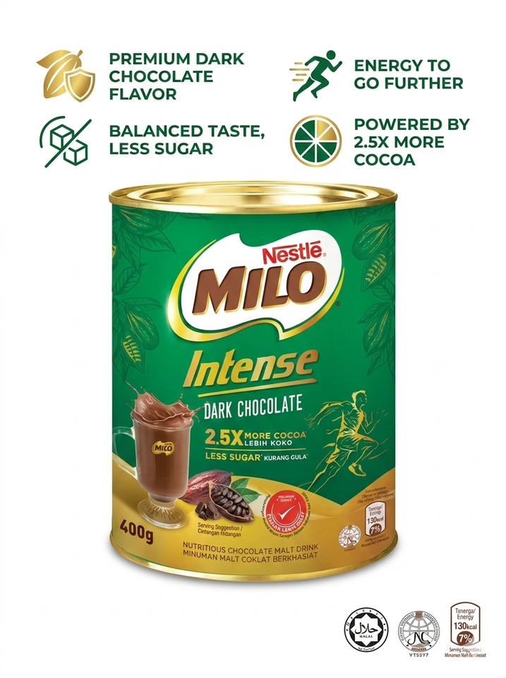 Milo Stickpack 33g en vrac, poudre de cacao biologique de haute qualité, poudre de chocolat noir intense, formule moins sucrée, produit sain