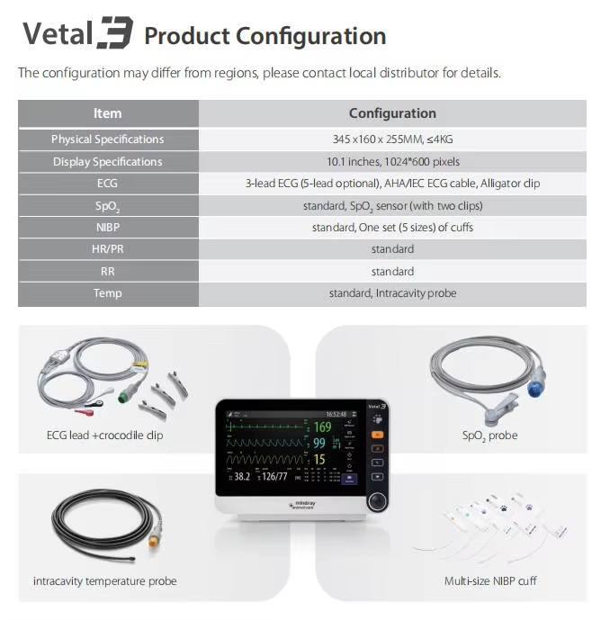 Moniteur patient vétérinaire Mindray Vetal 3 multiparamètres pour clinique vétérinaire, hôpital pour animaux, surveillance des chiens et des chats