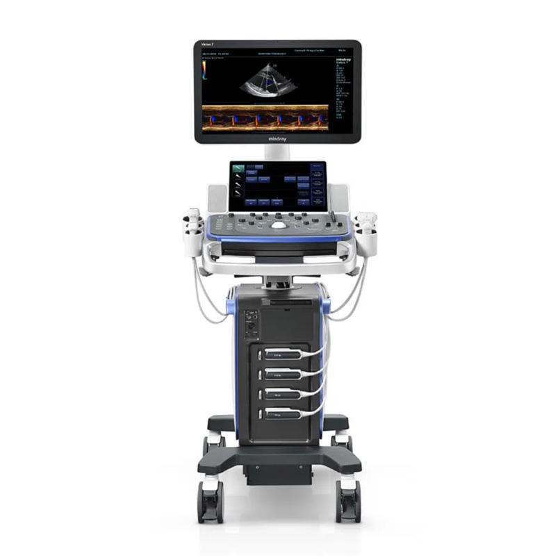 Échographe Doppler couleur standard Mindray Vetus 7 à double écran tactile pour diagnostic vétérinaire, chariot pour chien