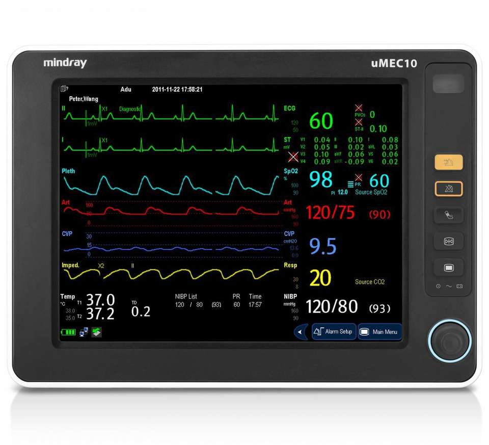 Moniteur patient Mindray uMEC10, écran LED 10,4 pouces, batterie 8 heures, ECG, NIBP, SpO2, Resp, Temp, anti-interférence pour hôpital, clinique, service.