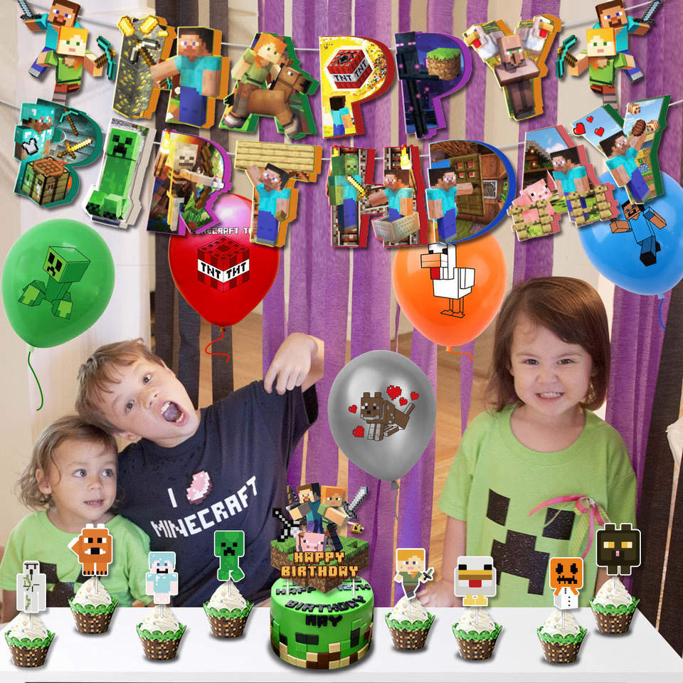 Product Name:Pixel Game Party Supplies Include Happy Birthday Banner Balloons