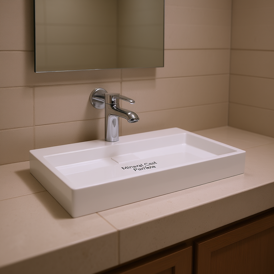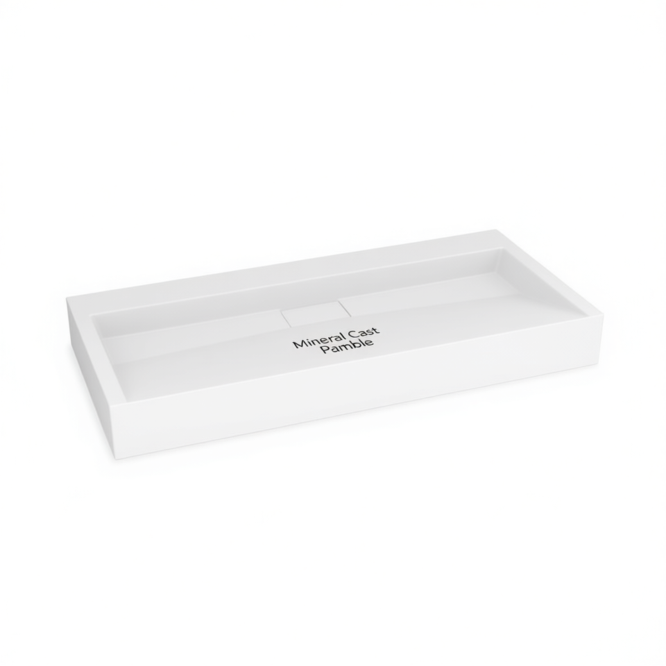 Lavabo rectangulaire blanc en fonte minérale 39,4x18,1x4,3 pouces, poli, à encastrer pour salle de bain