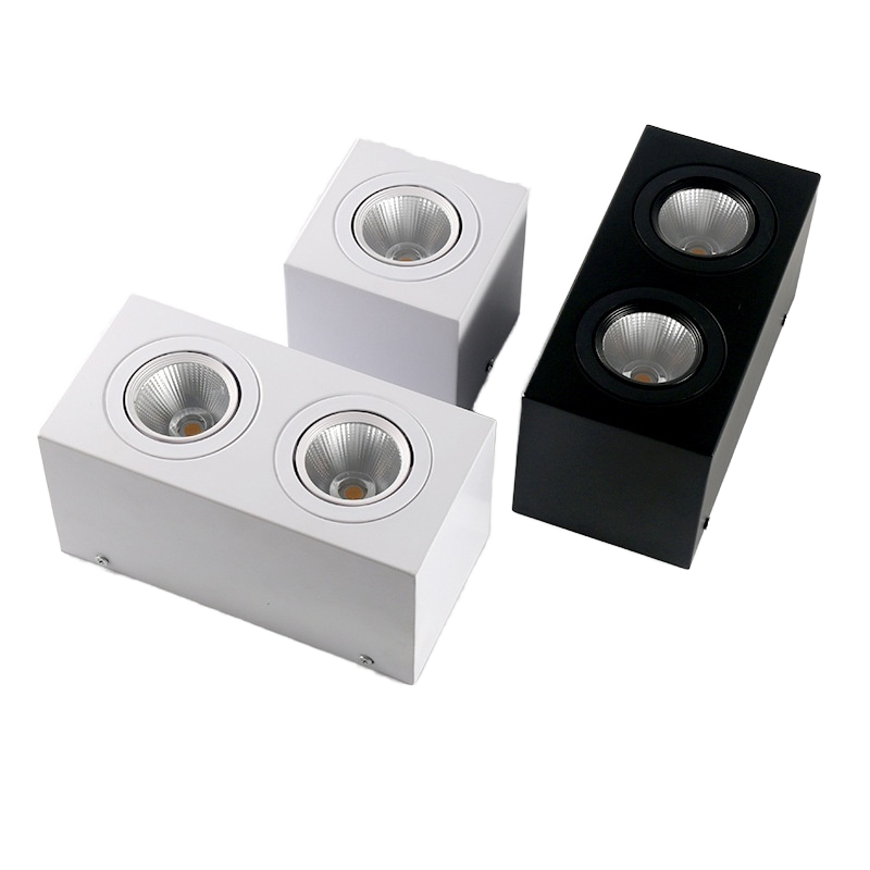 Projecteur LED monté sur Ming Design moderne Grille de boîte carrée Lampe à gerbe de haricot à tête unique ou à double tête pour projecteur de calandre