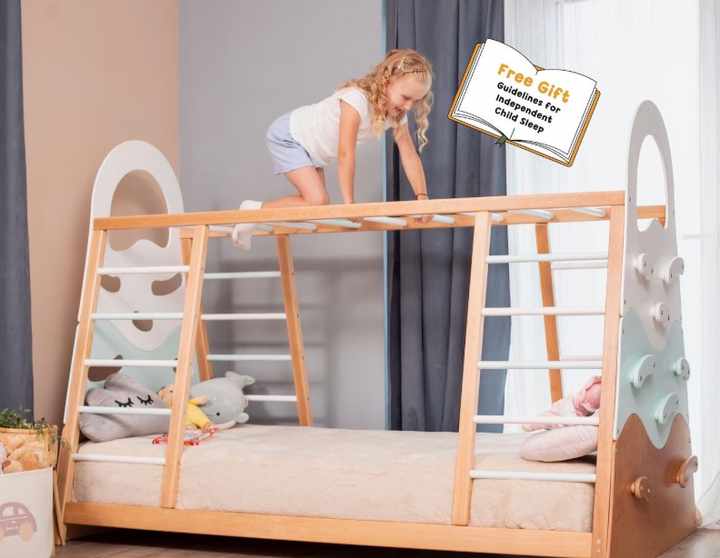 Minghang Montessori Inspired Toddler Climbing Gym Bed Wooden Activity Gym Kids Bed Slats Classic Toy Climbing Wall for 2-4 Years