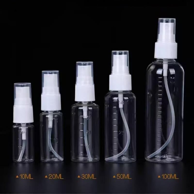 Bouteille pulvérisatrice graduée transparente Mingxu 10 20 30 50 100 ml en plastique avec buse de pulvérisation pour distribution de liquides