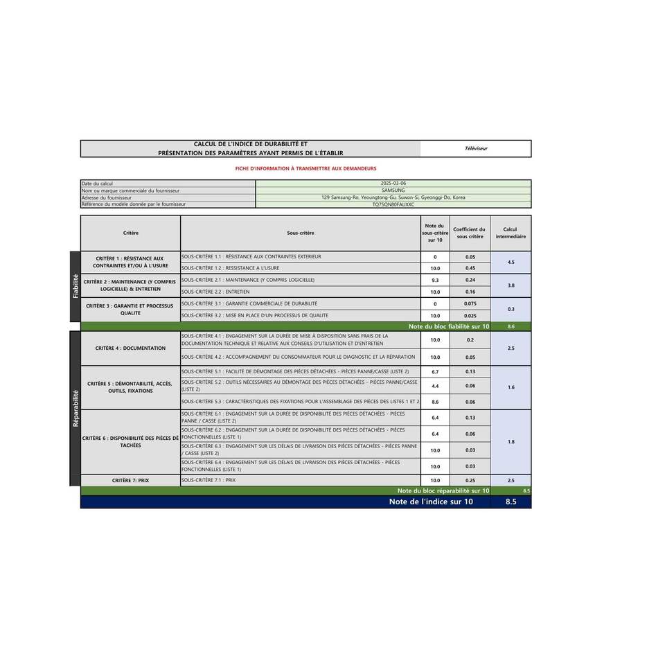 Caractéristiques du produit