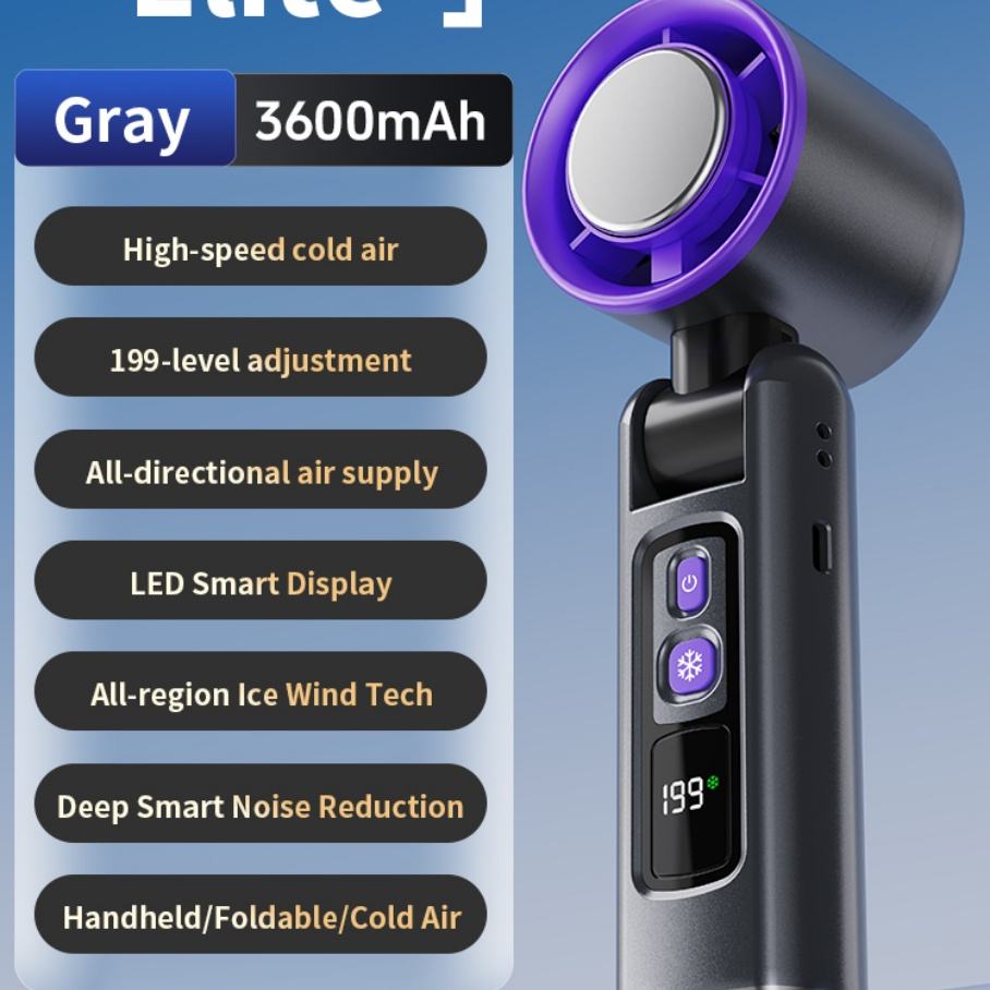 Mini ventilateur pliable à affichage numérique haute vitesse 199 3600 mAh rechargeable par USB, ventilateur de refroidissement à compression, ventilateur à main
