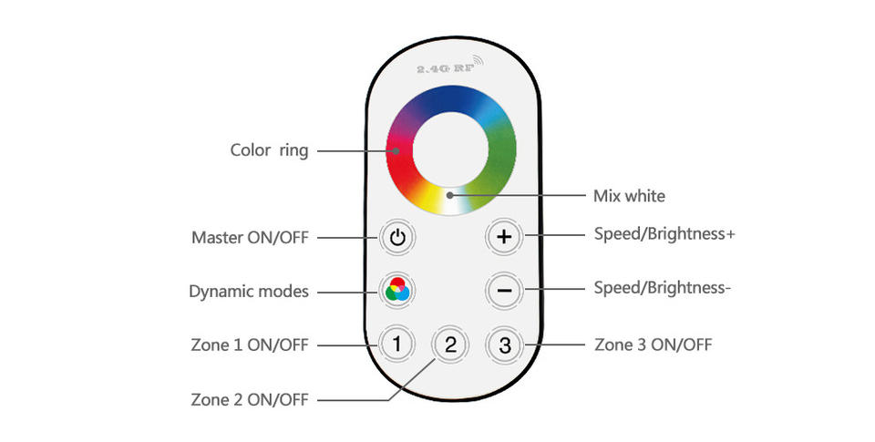 Mini contrôleur Led 2.4G Rf Rgb Dimmable 3 zones à distance 18A Max Led bande couleur unique CCT Rgb contrôleur