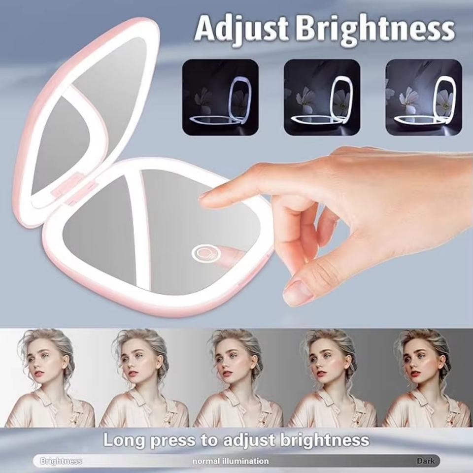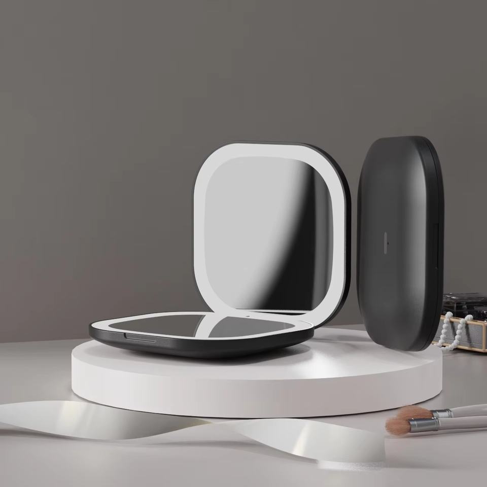 Mini miroir de maquillage compact rechargeable à double face avec grossissement 5X et lumières LED, miroir cosmétique portable éclairé pour le voyage