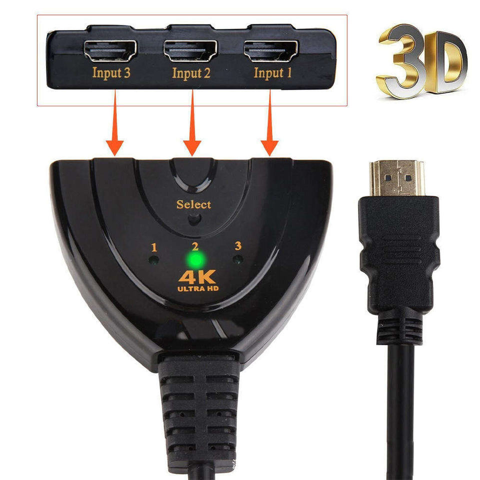 Mini 3-en-1 pour répartiteur HDMI 4K * 2K 3D 1.4b 1080P câble de commutation pour DVD HDTV Xbox pour PS3 PS4 Projection d'écran à partir du projecteur