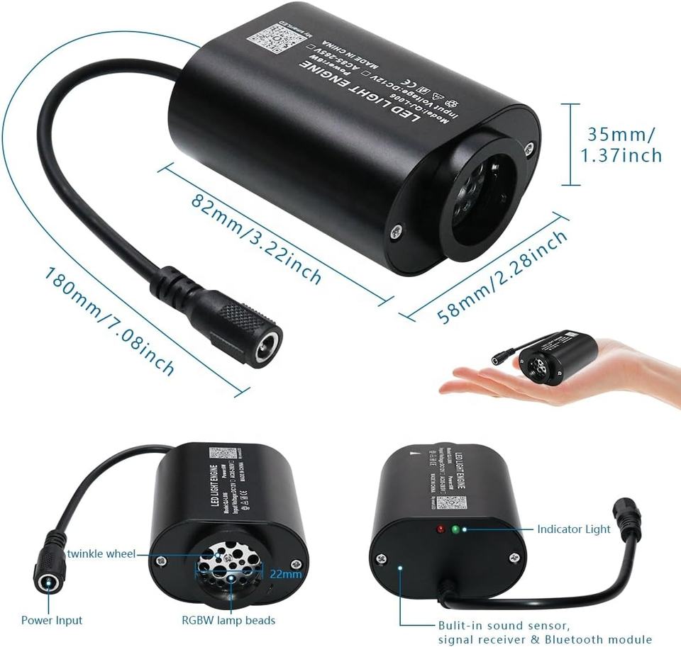 Kit d'éclairage de plafond ciel étoilé scintillant Mini 6W RGBW avec télécommande et contrôle par application pour voiture et maison