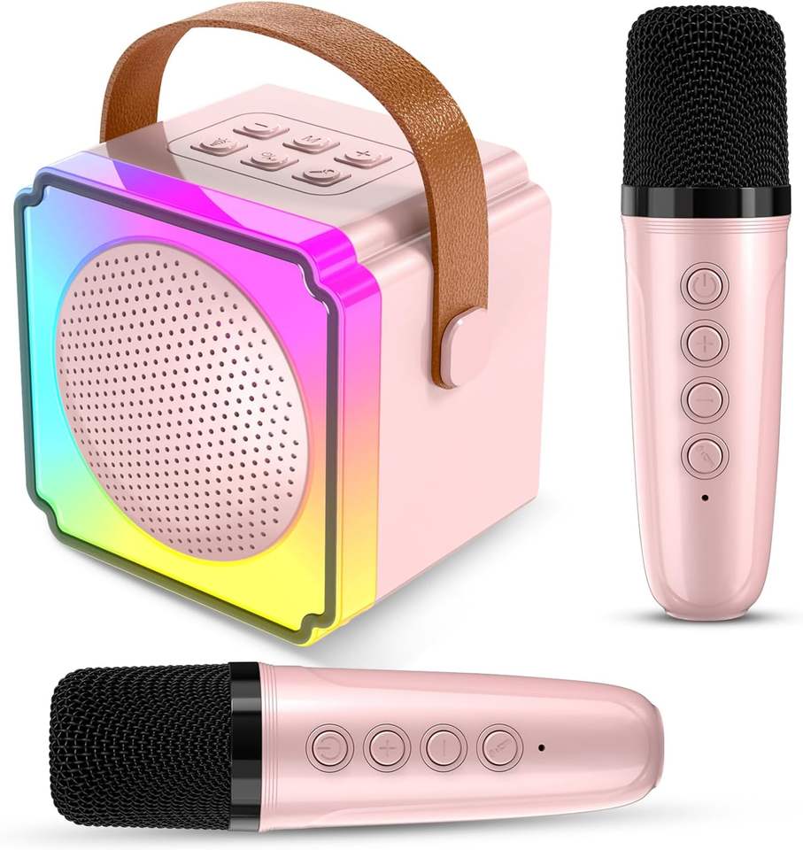 Mini haut-parleur Hi-Fi actif à double microphone avec éclairage LED RGB, 2 microphones sans fil pour chanter du karaoké, audio Hi-Fi, cadeaux Hi-Fi