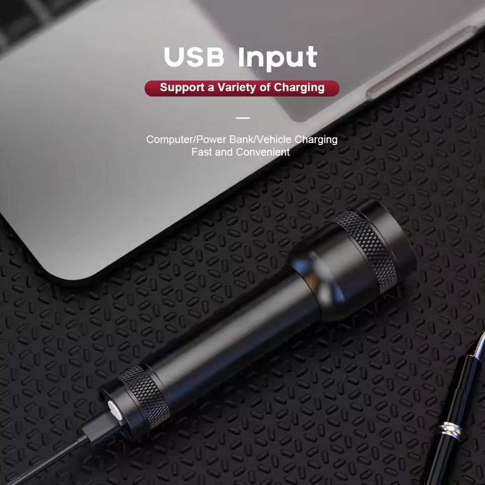 Mini lampe torche d'urgence en alliage d'aluminium 150lm, zoomable, étanche, rechargeable par USB, lampe torche portable