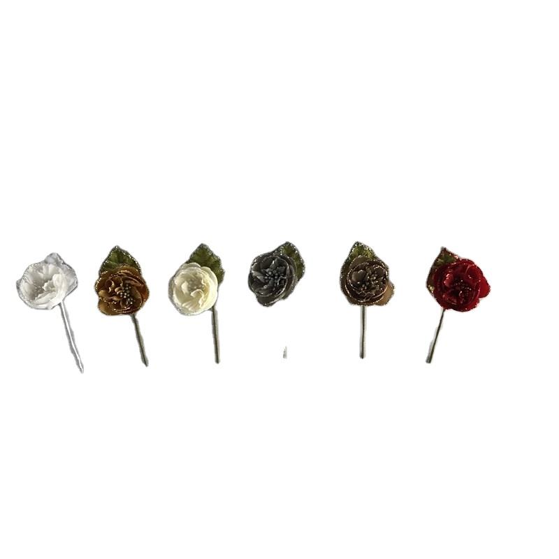 Mini rose artificielle pailletée, tige unique, 1 pièce