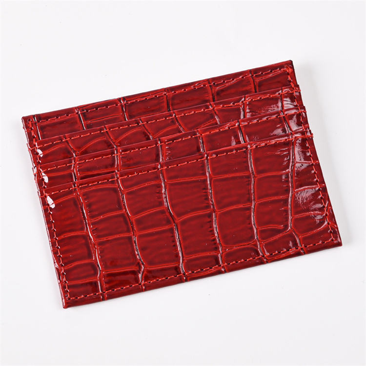 Porte-cartes ultra-fin en cuir de crocodile pour femme, mini porte-cartes bancaires et d'identité