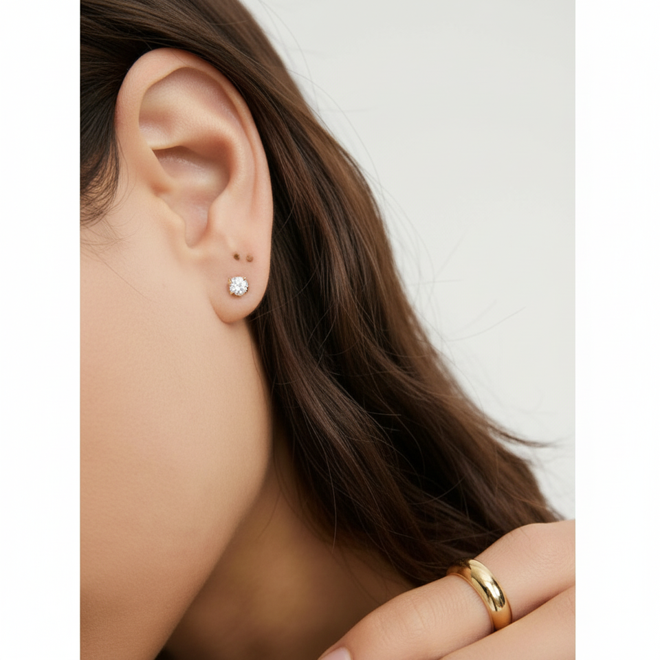 Mini boucles d'oreilles à clous en diamant de laboratoire rond à bélière, accessoire de mode