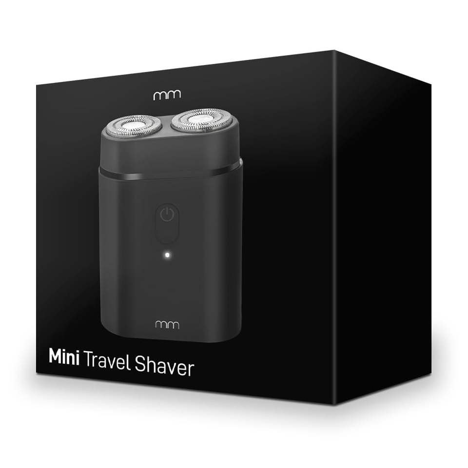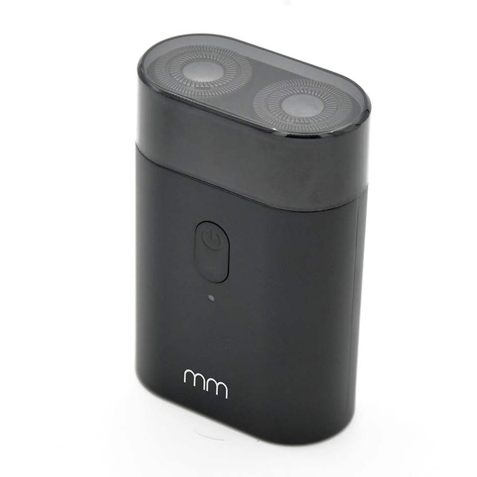 Mini rasoir électrique noir compact, portable, sans fil, rechargeable, à double tête rotative, double lame, IPX7, pour utilisation en camping-car et en voyage
