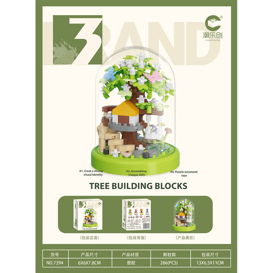 Mini Ensemble de Construction Maison dans les Arbres avec Dôme en Verre, Modèle 3D en Plastique, Maison Miniature avec Fleurs pour Jouet de Blocs de Construction DIY