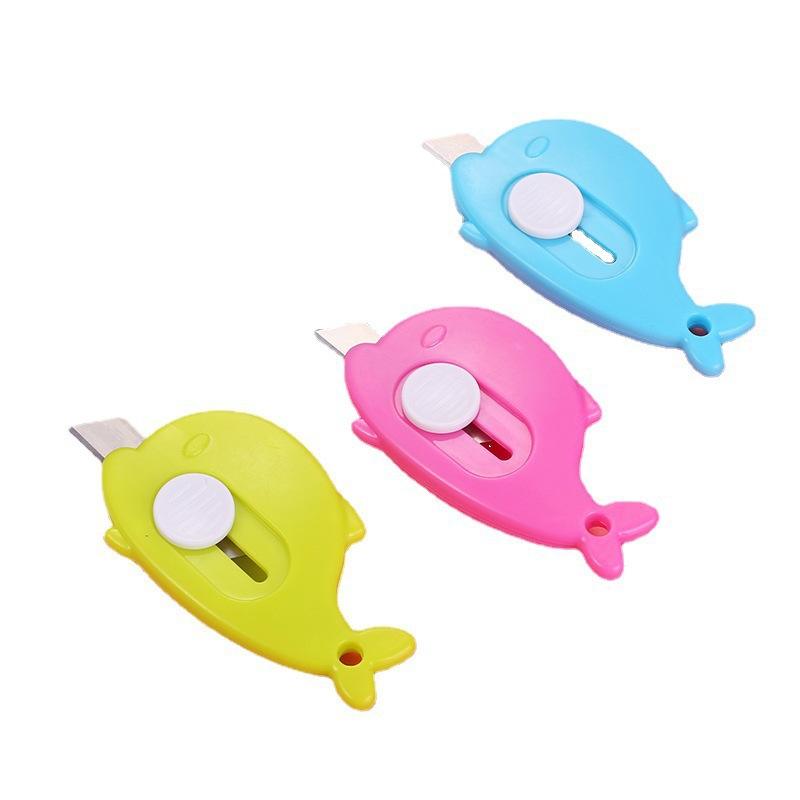 Mini couteau de loisirs créatifs en forme de dessin animé 6 cm x 3,5 cm, lame droite, plastique et métal, coupe-papier pour enfants, formes dauphin, baleine, carotte, outil utilitaire pour étudiants