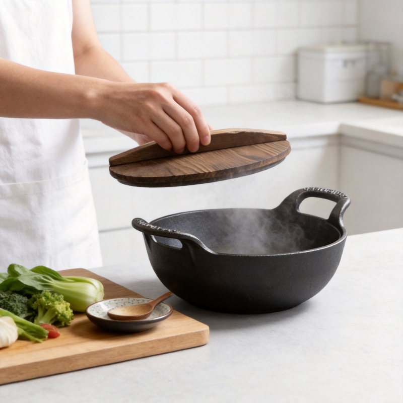 Mini wok en fonte avec poignée en boucle - Poêle à frire antiadhésive pré-assaisonnée à fond plat pour cuisinières à induction, électriques et à gaz