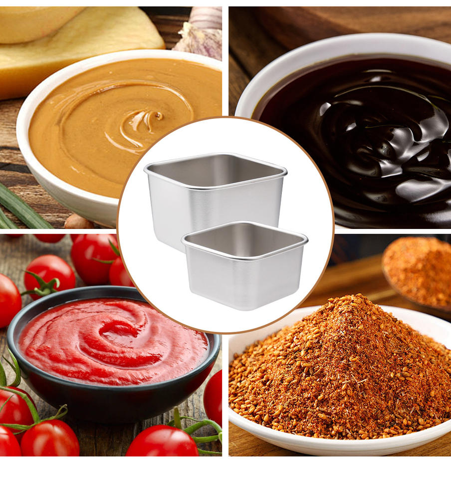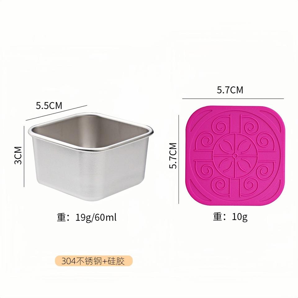 Mini-récipient carré en acier inoxydable de 60 ml, portable, pour salade ou sauce, avec couvercle en silicone