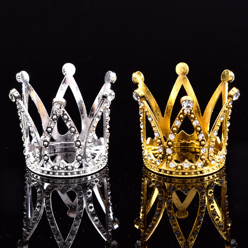 Mini Couronne Gâteau Topper Prince Princesse Petit Diadème Cupcake Toppers Bébé Minuscule Miniature Couronnes Petit Strass Doré
