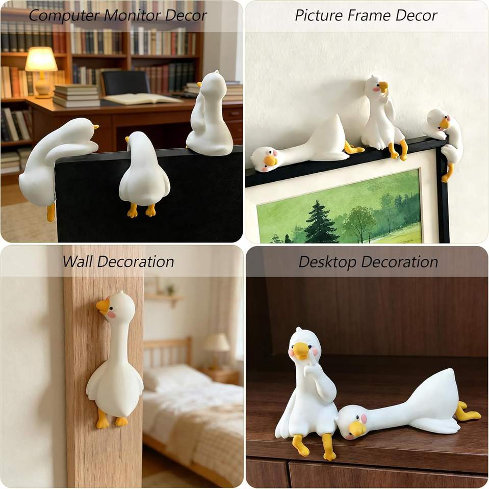 Mini figurine d'oie mignonne, ornement pour écran d'ordinateur, décoration de voiture, accessoire de décoration pour cadre photo de bureau, figurine cadeau