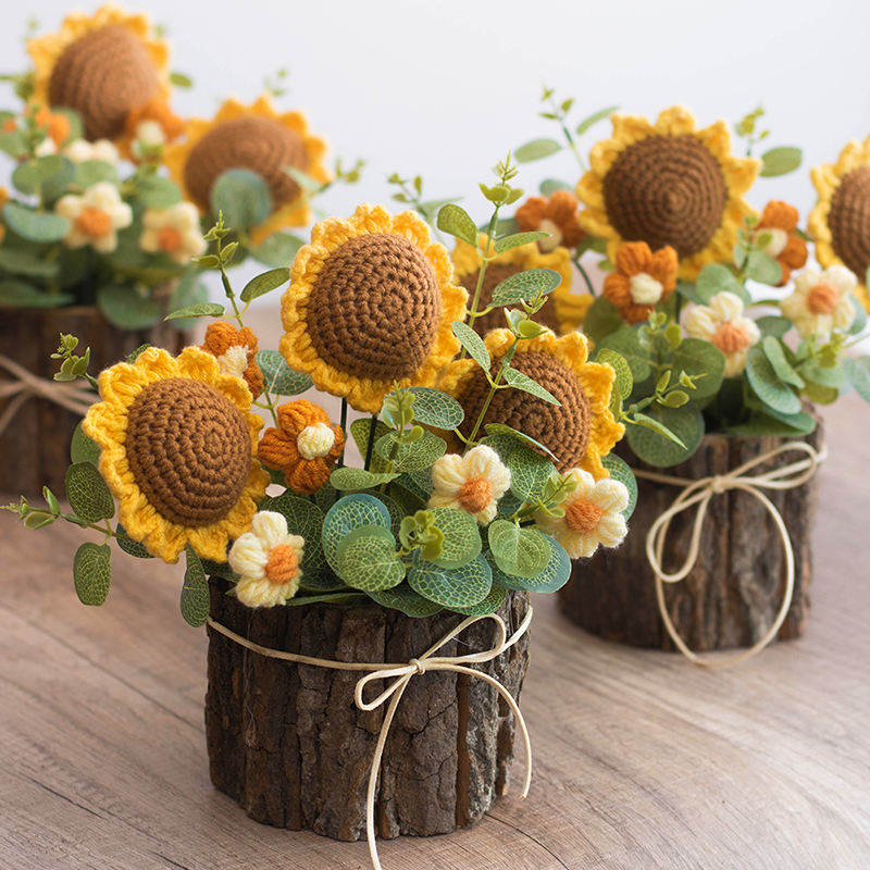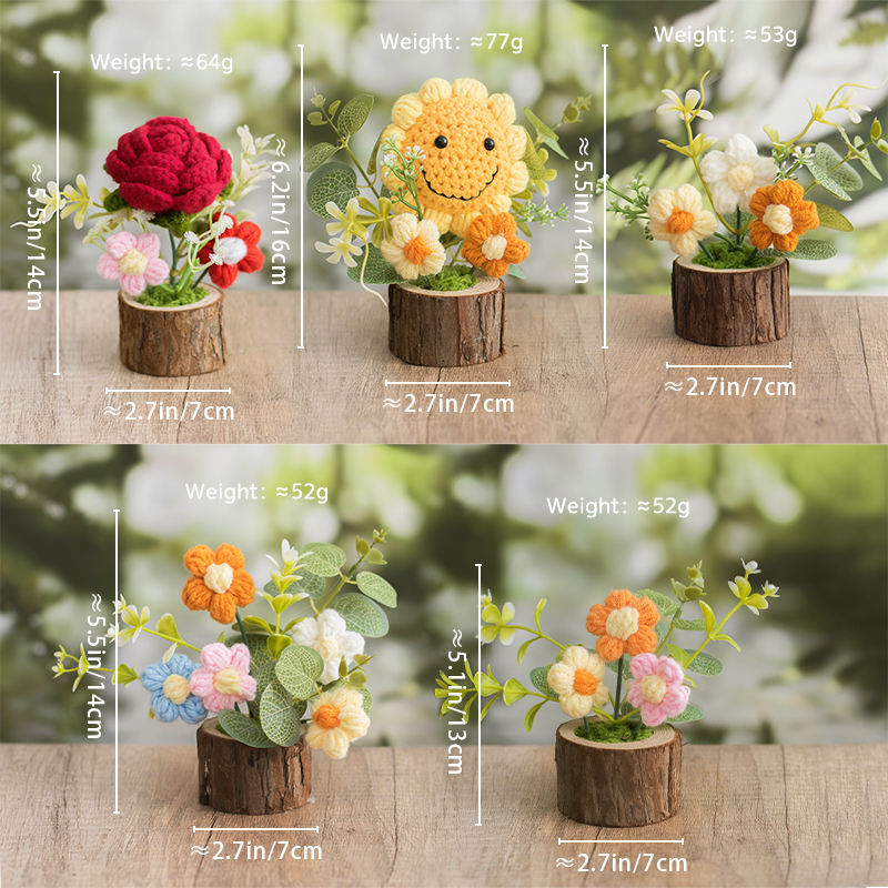 Mini pot de fleurs en crochet fait main, rose, tournesol, nouvelle fête des mères, Noël, nouvel an, Halloween, rentrée scolaire, fête des pères