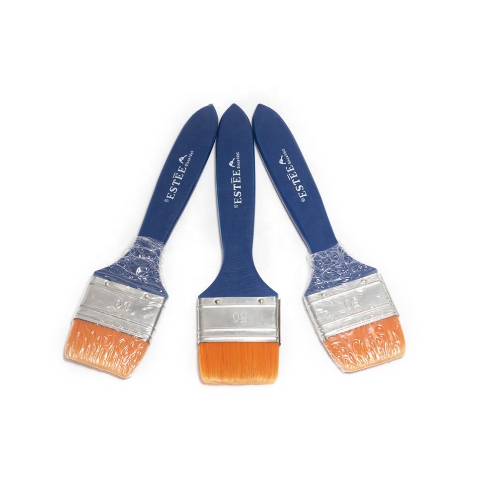 Mini pinceau plat industriel pour peinture, personnalisable OEM, manche en bois, fibres synthétiques pour papier de découpage
