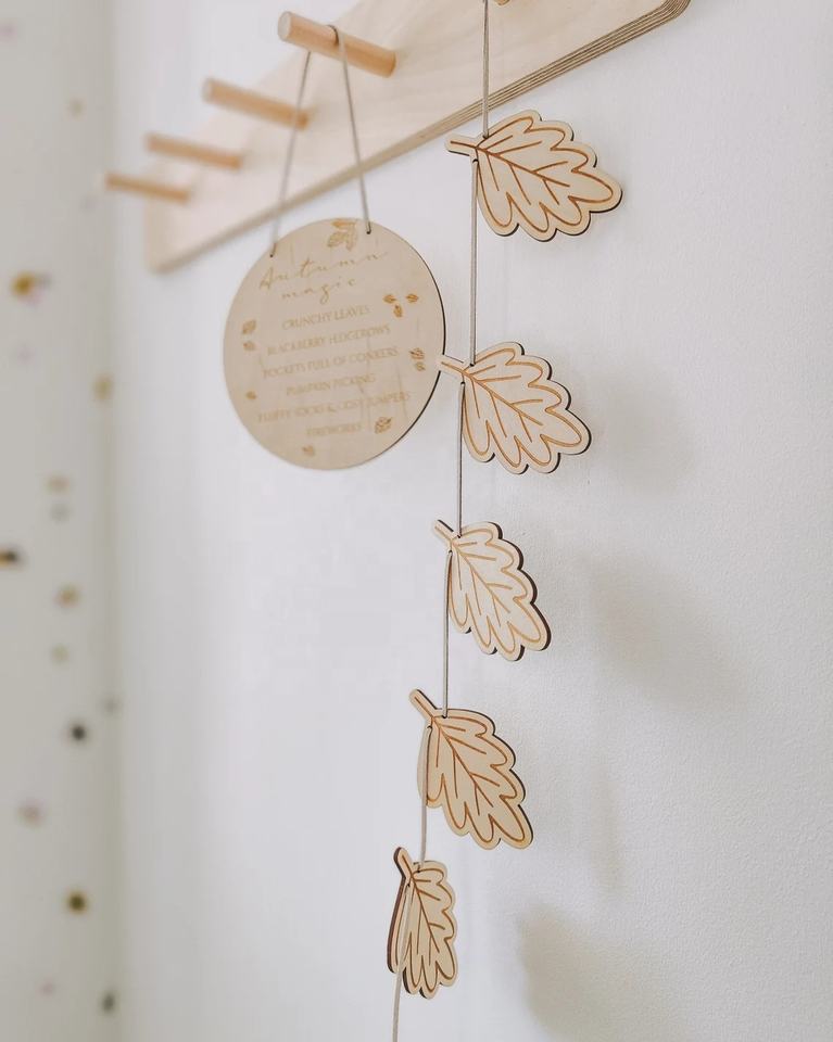 Mini feuilles décoratives en bois découpées au laser SVG, faites à la main, design moderne Delarchi, utilisées comme cordes décoratives suspendues pour les félicitations