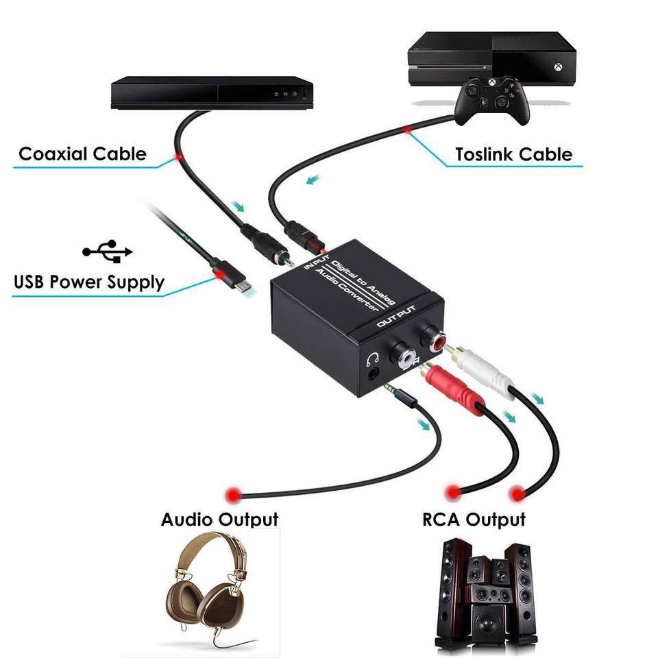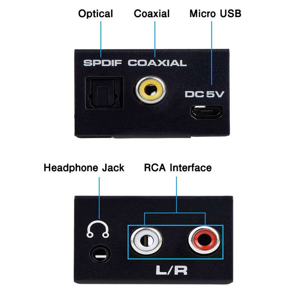 Mini convertisseur numérique optique Toslink coaxial vers analogique RCA L/R avec convertisseur audio 3,5 mm DAC numérique SPDIF optique vers analogique