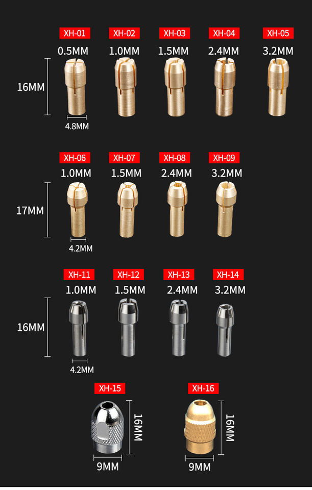 Adaptateur de mandrin de perceuse miniature 0,5 mm-3,2 mm en laiton, adaptateur de pinces de serrage micro en laiton pour outil rotatif électrique