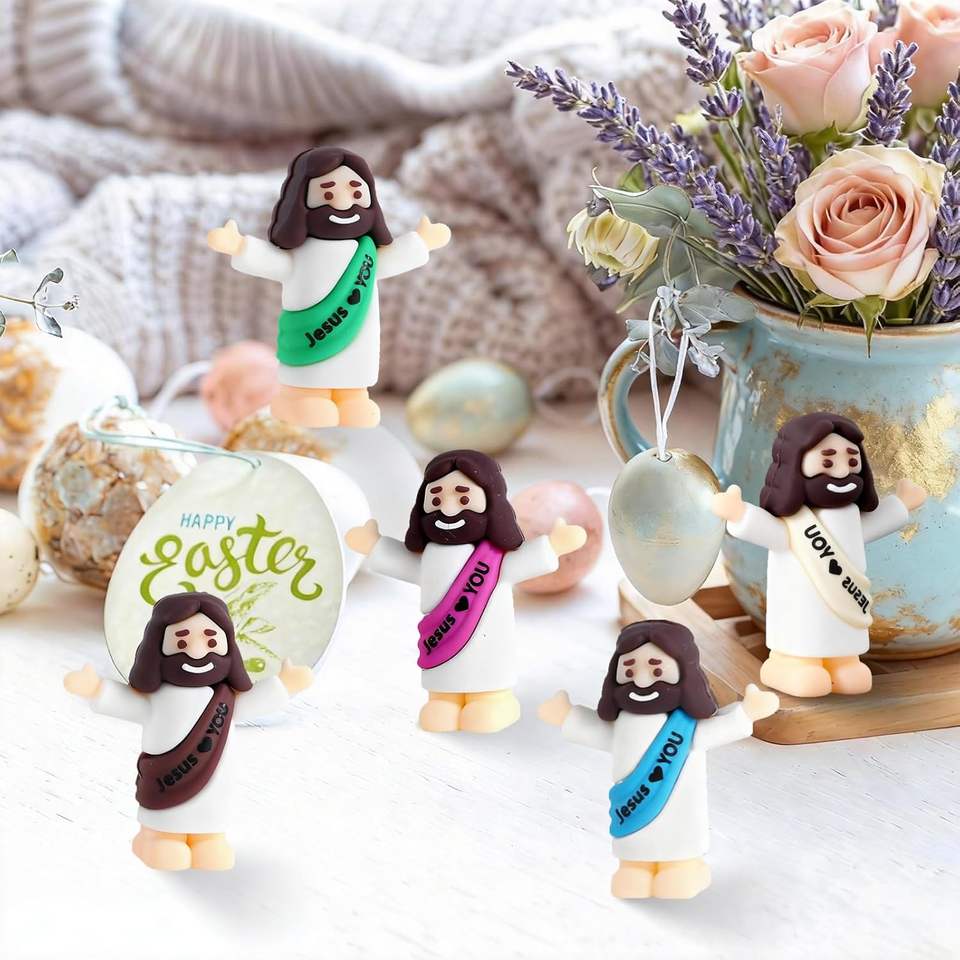 Mini Ornements Religieux de Pâques Écologiques en PVC, Figurines de Jésus en Résine en Gros, Style Étreinte 'Jésus t'aime', Petites Figurines de Jésus, Jouets Religieux