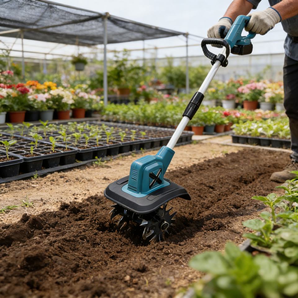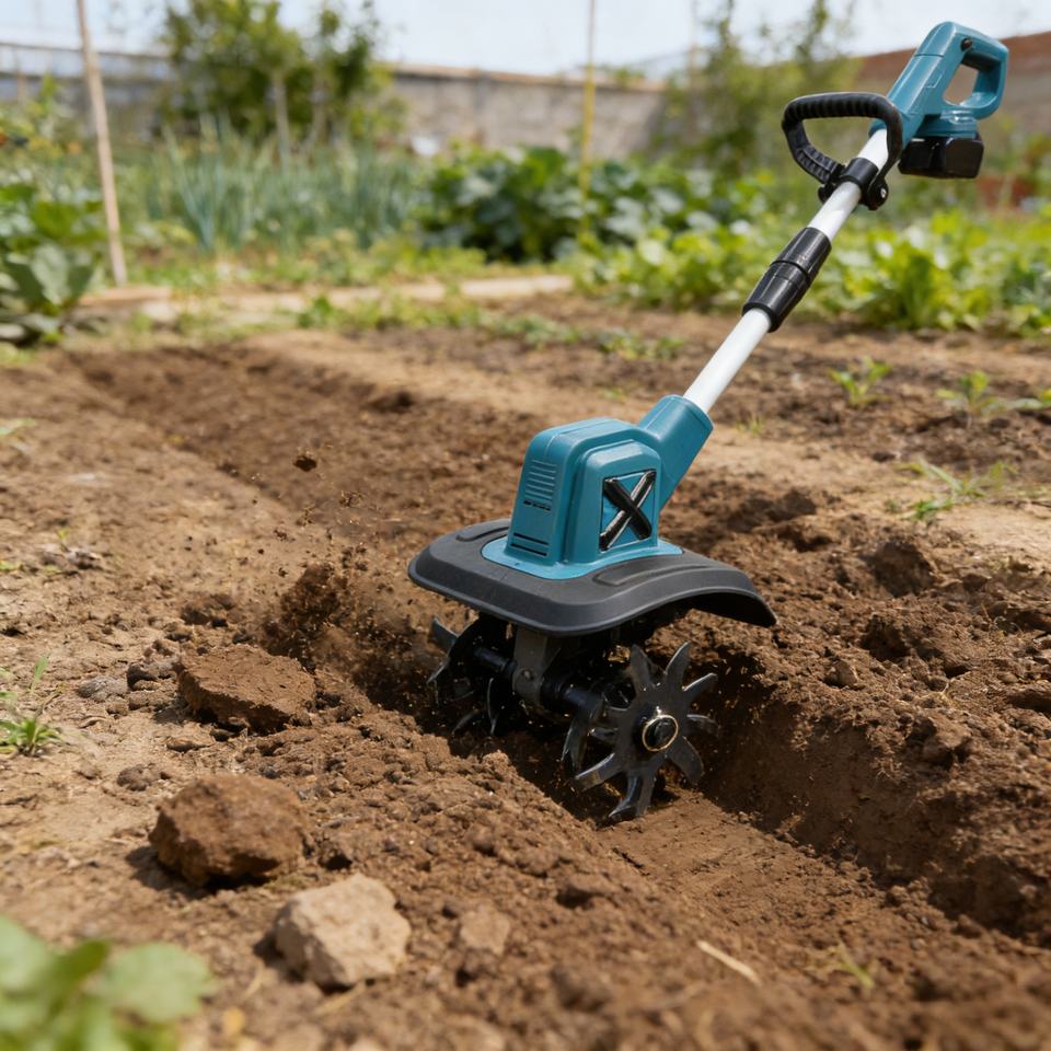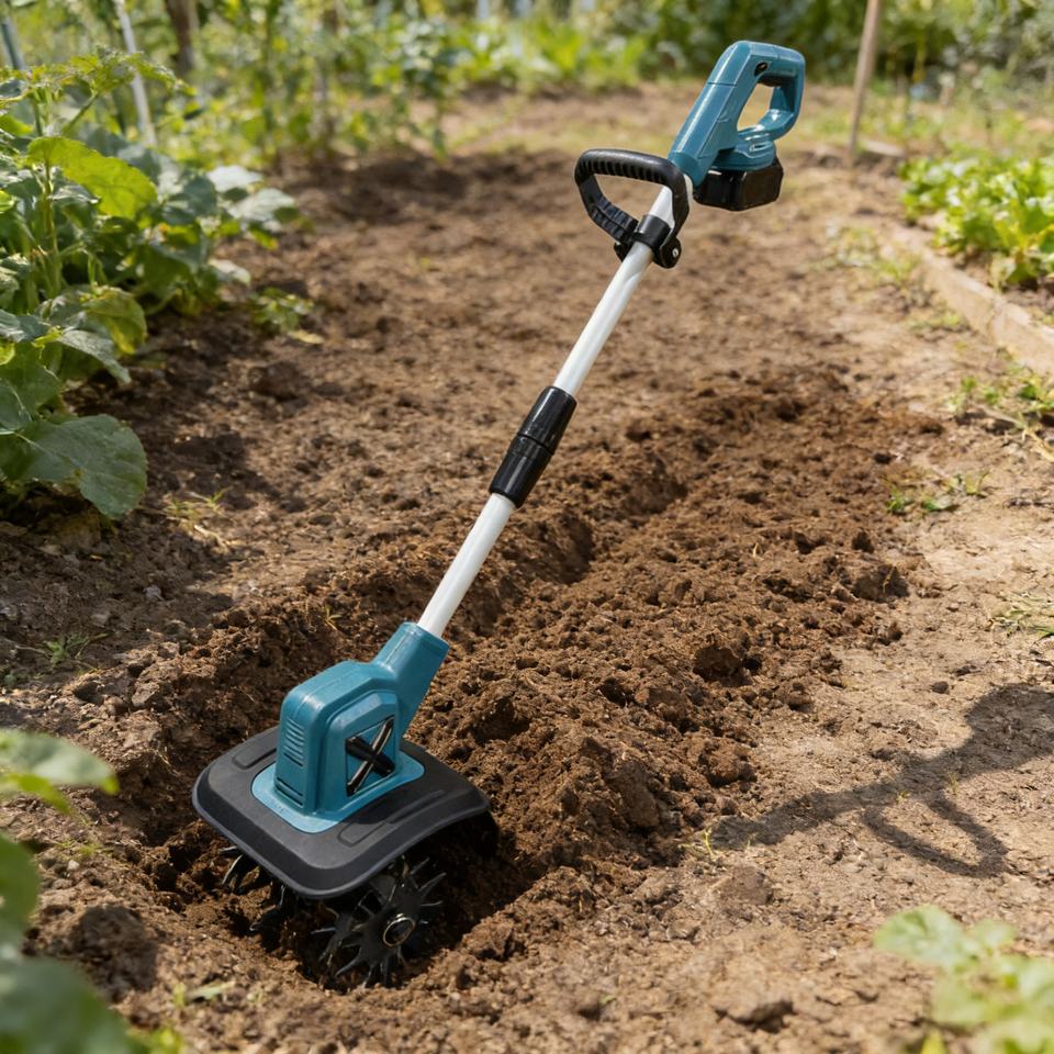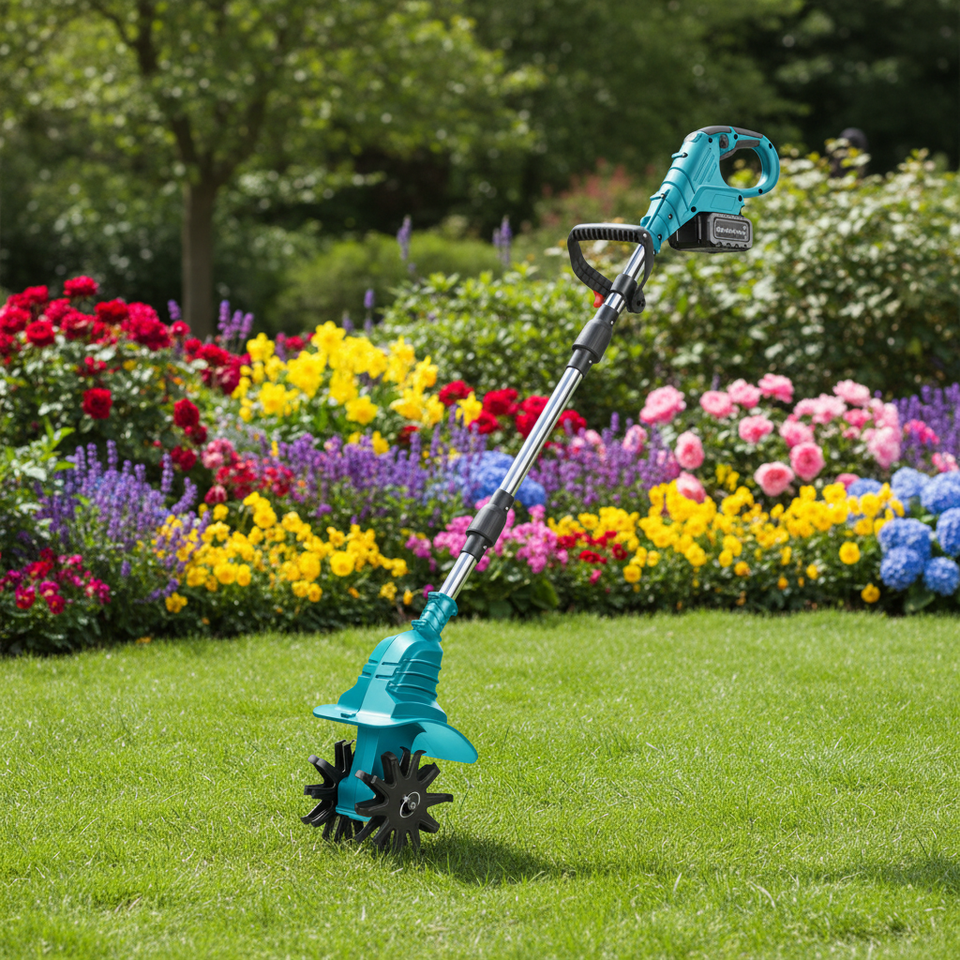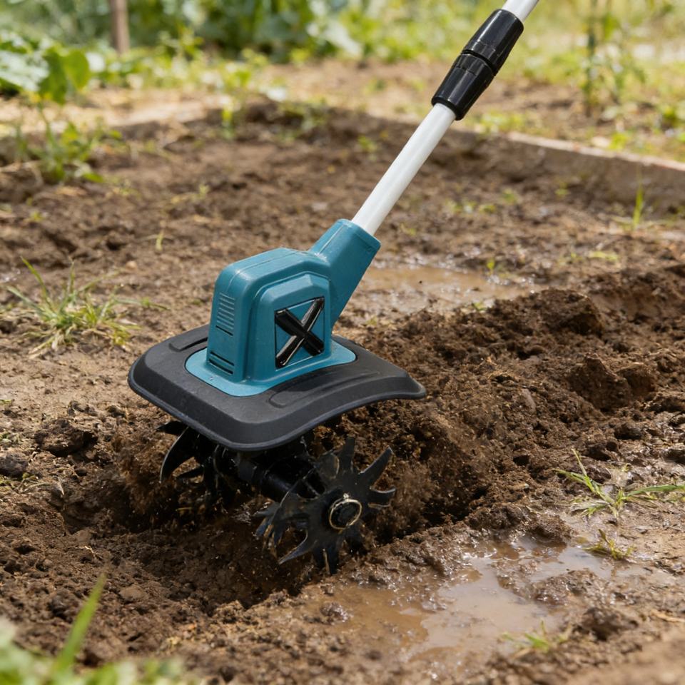 Mini motoculteur électrique rotatif avec moteur au lithium, micro-motoculteur agricole, désherbeur, tondeuse à gazon, facile à utiliser, léger (2,7 kg), noir/bleu