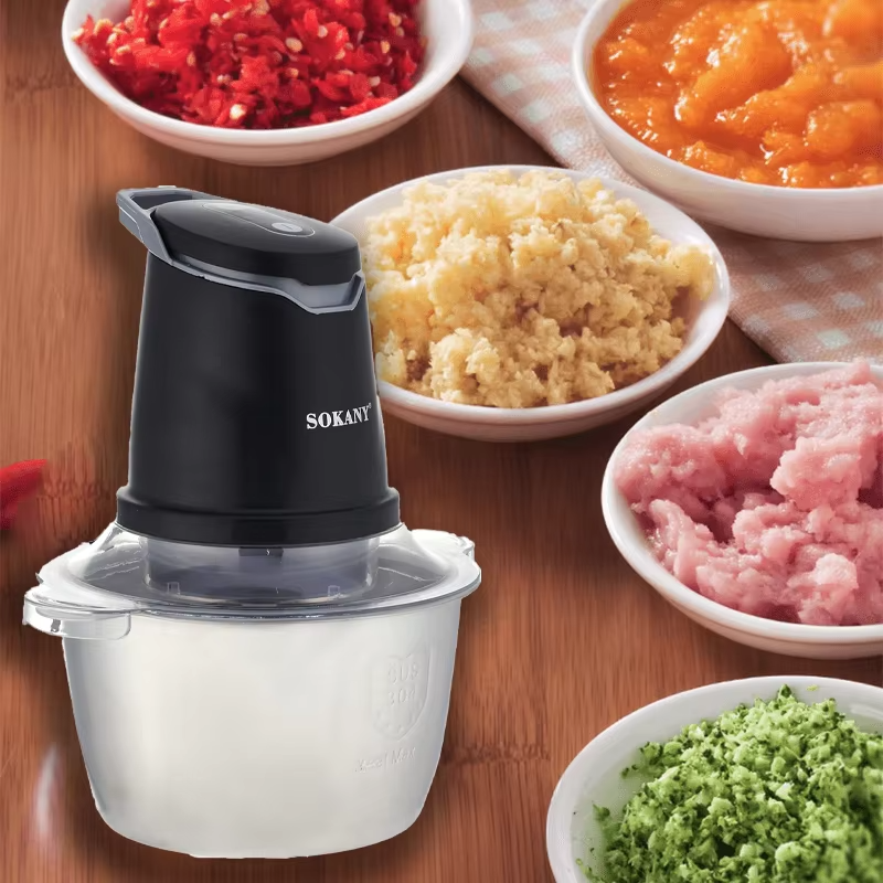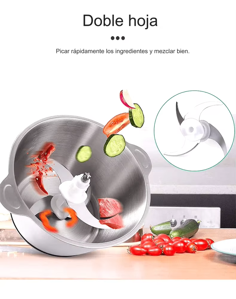 Mini machine électrique à frire, haute efficacité, acier inoxydable, 400W, capacité 2L, 2 vitesses, 4 lames, hachage et broyage