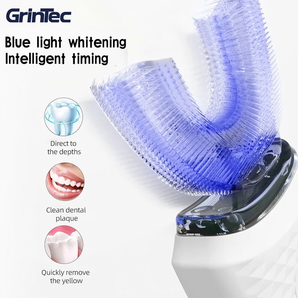 Mini Appareil de Blanchiment des Dents Électrique Brosse à Dents Sonique en U à 360 Degrés avec 3 Modes