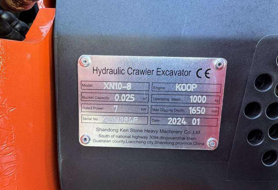 Mini-excavatrice 1.0T Rhinoceros XN10-8 avec joysticks latéraux, moteur Yamaha, composants essentiels inclus (moteur, boîte de vitesses, engrenages) - MACHINE UNIQUE