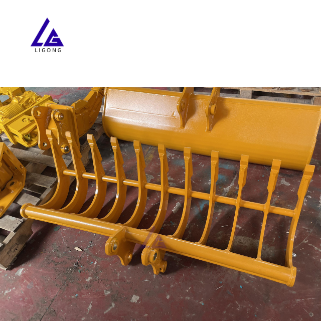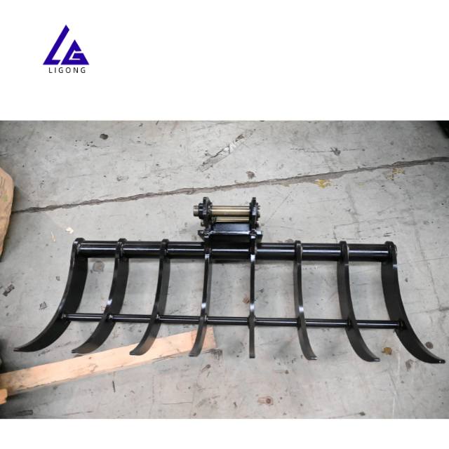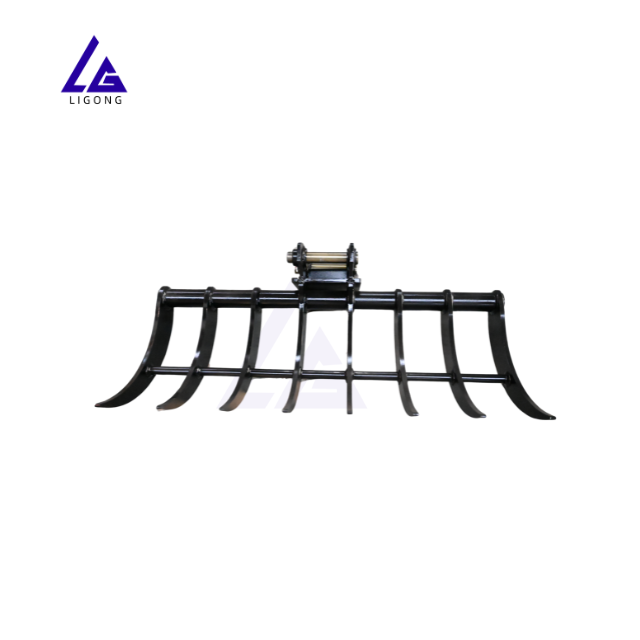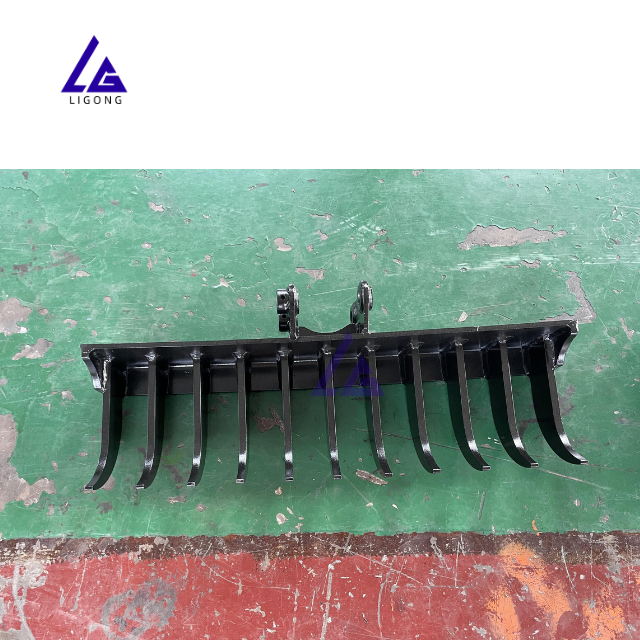 Râteau monté sur mini-excavatrice, léger, fonctionnement fluide, flexible pour l'aménagement paysager et les travaux de jardinage