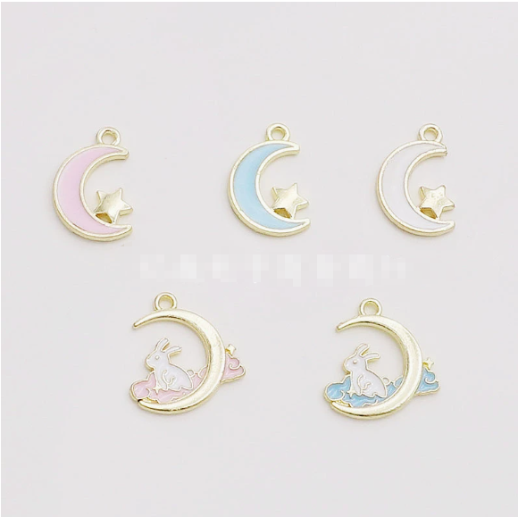 Mini breloques en alliage de zinc plaqué or, mignonnes, en émail, motif croissant de lune et étoile, style musulman islamique, pour la création de bijoux DIY
