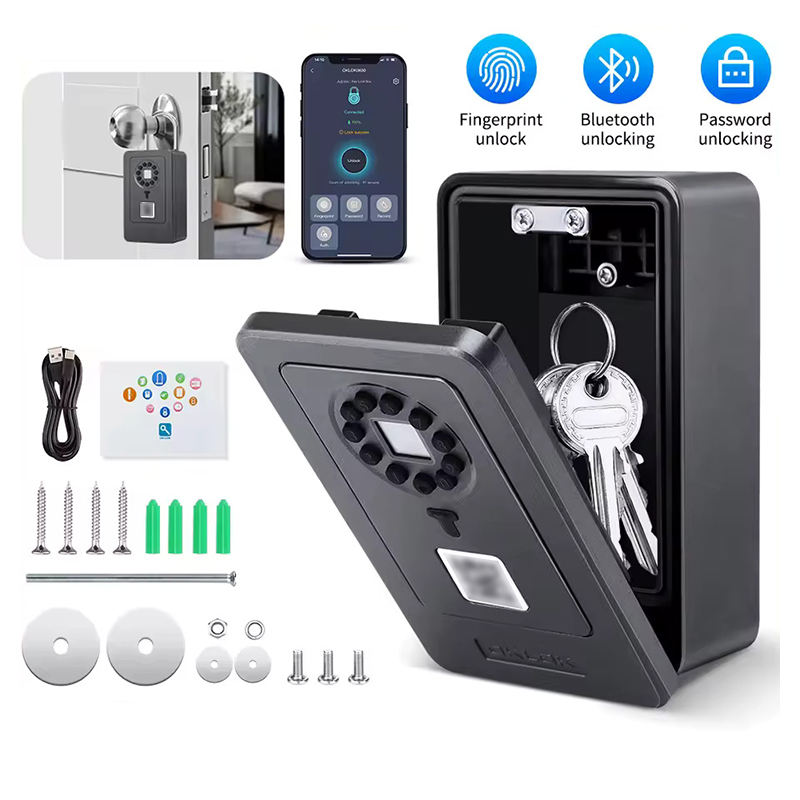 Mini Fingerprint Biometric Door Master Storage Small Metal Code Electronic Combination Safety Smart Key Lock Box Wall Mounted