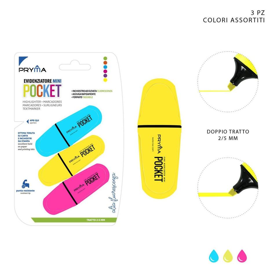 Mini surligneur à tête plate 2/5MM 3PCS-Outils d'écriture